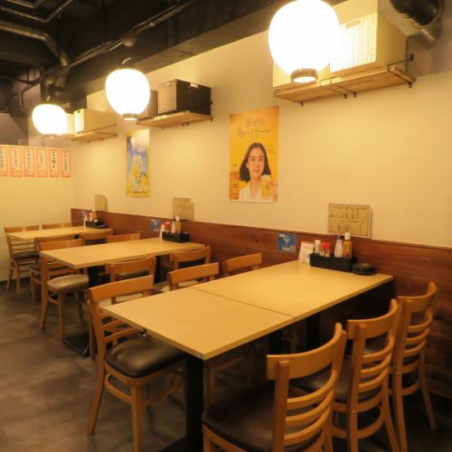 店内は社員の宴会や気軽な集まりに対応できるテーブル席を中心とした構成で、つながりのある配置が魅力です。ゆったり過ぎない心地よい距離感は会話を楽しむのに最適☆大人数での貸切や会社の部署単位での利用も可能なので、多彩な使い方が叶います。温かみのある照明が、カジュアルな中にもくつろげる空間を演出します◎